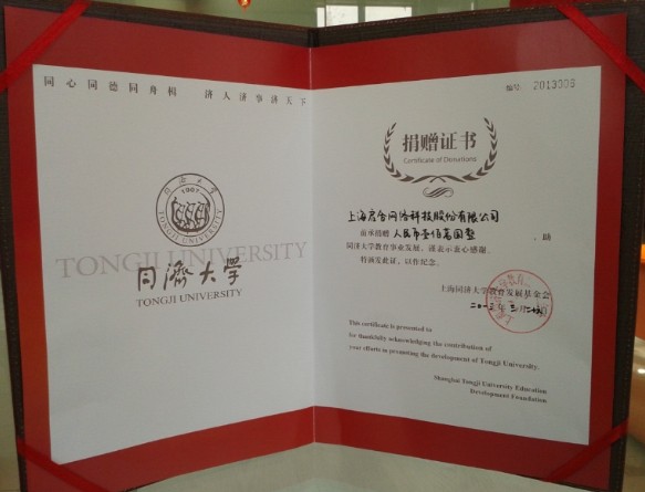 沒有隆重的捐贈儀式,沒有慷慨激昂的捐贈演說。2345.com龐總向同濟大學捐助了100萬元用于同濟大學發展教育事業。