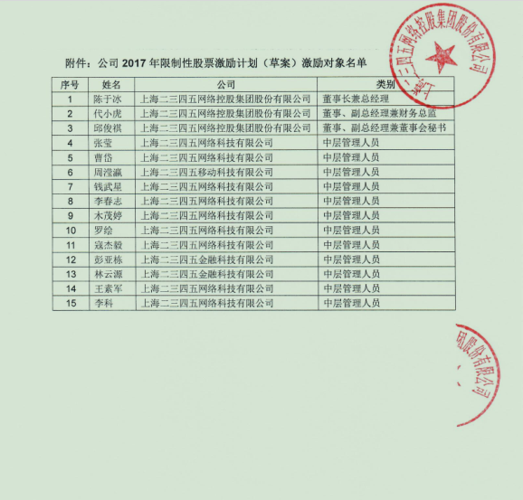 2017年限制性股票激勵計劃激勵對象名單公示
