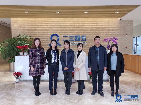2019年12月11日,浦東新區科經委徐敏栩副主任一行蒞臨上海二三四五網絡控股集團股份有限公司(以下簡稱“二三四五”,002195.SZ)總部調研、指導工作,二三四五集團副總裁羅繪、公共事務部負責人郭慶玲等相關負責人陪同參觀并座談。