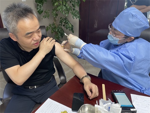 PS:咱們的管理者團隊當天也有積極參與疫苗接種哦~積極響應國家號召,也為咱們員工做個榜樣,幾位管理者們率先接種了疫苗。下圖為公司董事長陳于冰先生接種疫苗中~